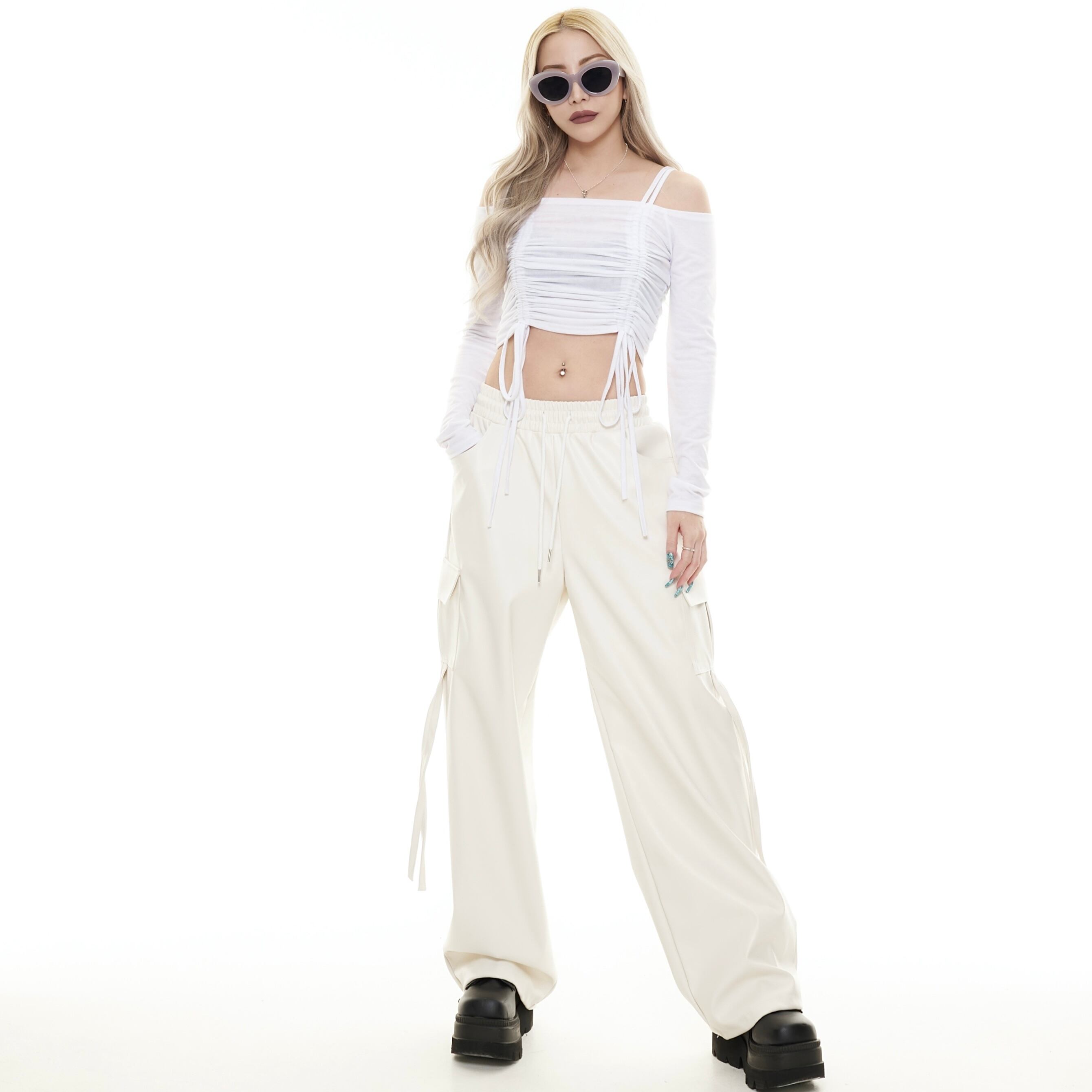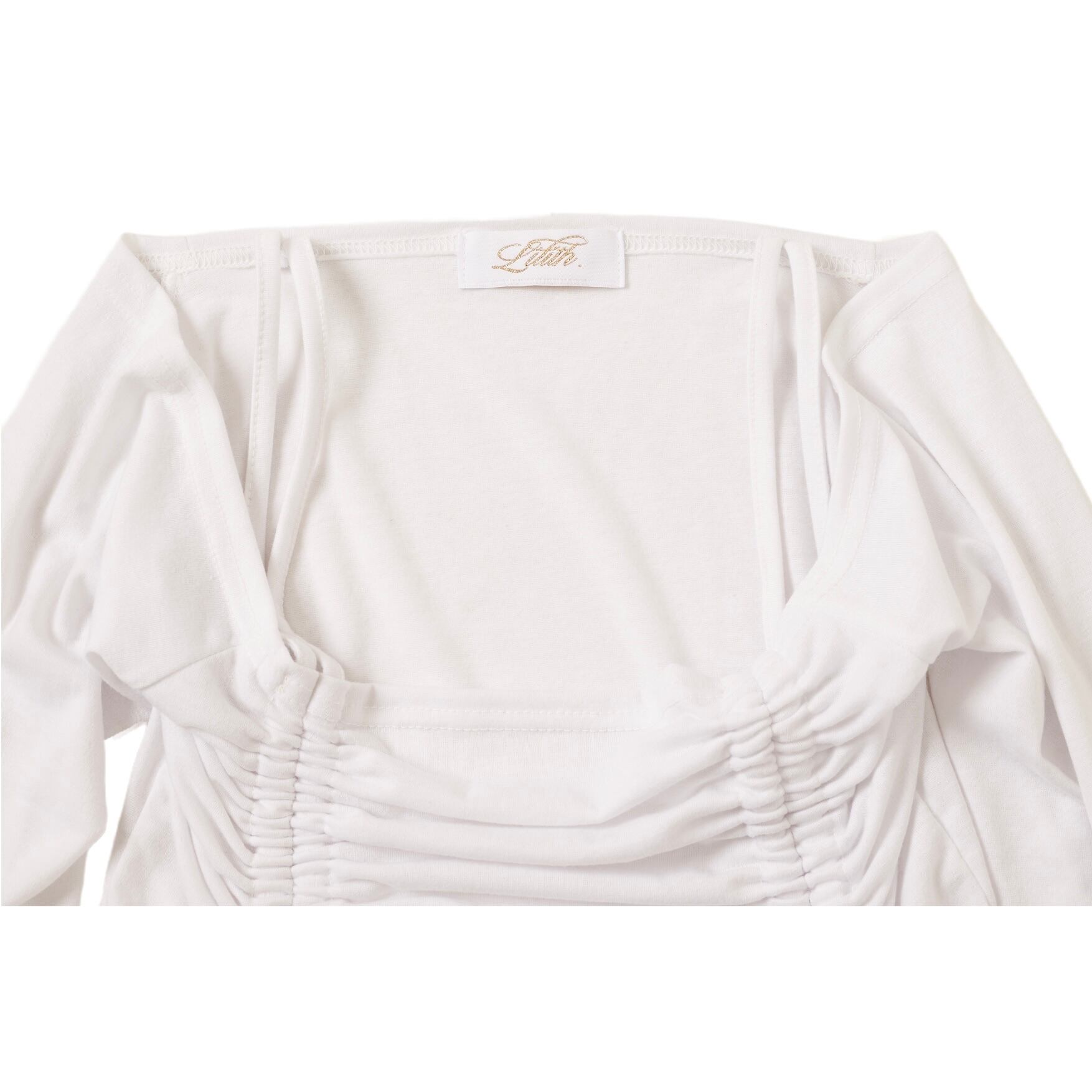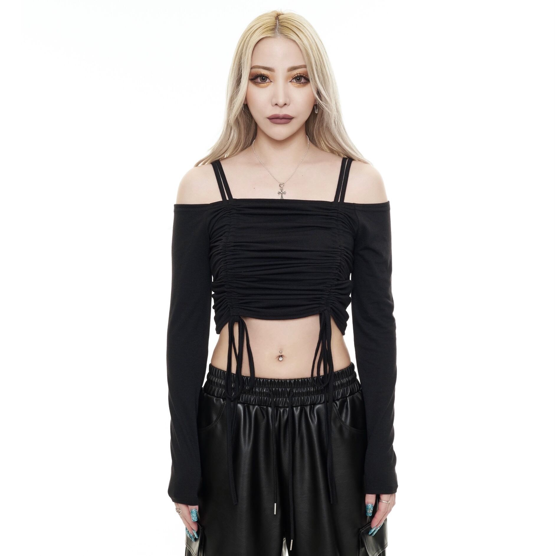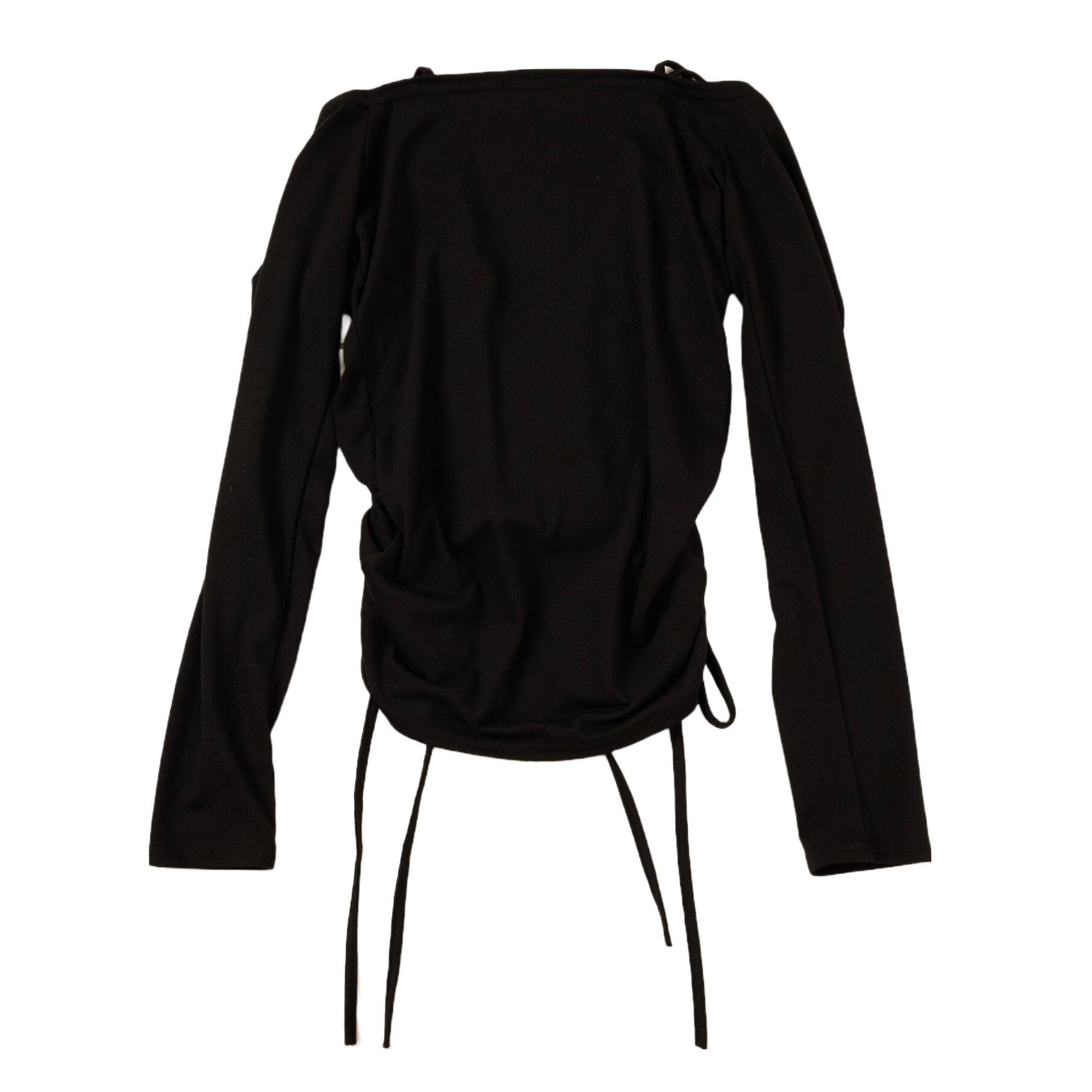 topsの着丈は前に付いている両側の紐を絞ることでお好きな着丈に長さに調節していただけます。
