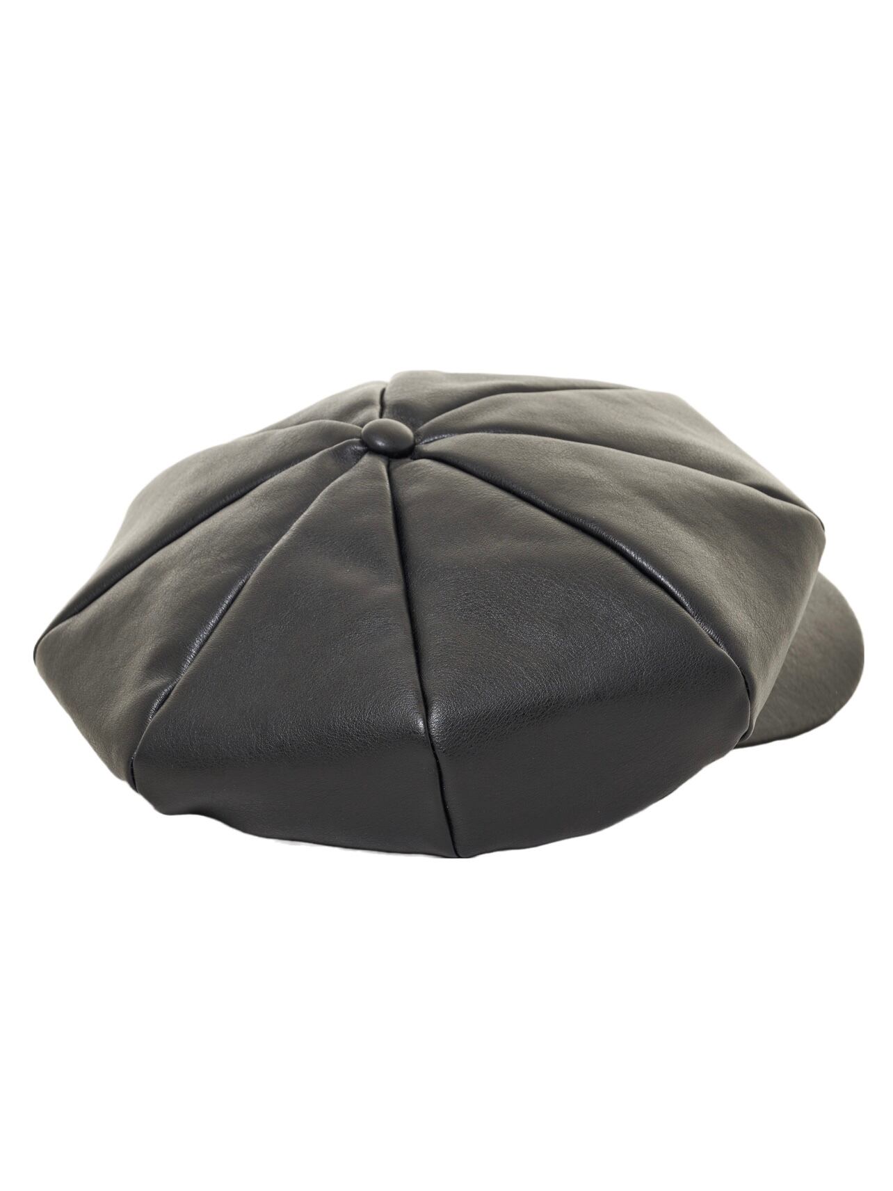 大きめのシルエットが可愛いフェイクレザーキャスケット。光沢を抑えたフェイクレザーを使用しており、どんなファッションにも合わせやすいです。